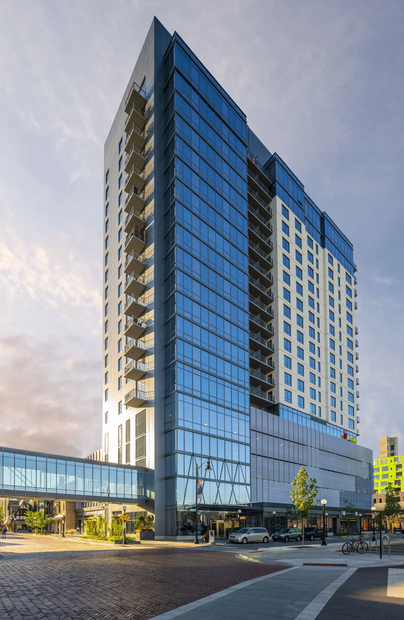 Experience sustainable living at its finest with LEED Silver level design and features. Choose between high-rise living or the charming ambiance of Lake Street, each offering two distinct interior options. Indulge in designer backsplash and stainless steel appliance packages in the kitchen, ceramic tiled showers with frameless glass doors in the bathrooms, and luxury wood-style flooring throughout. Select units feature under-cabinet accent lighting, Nest thermostats, and stainless steel appliances for added convenience and sophistication.